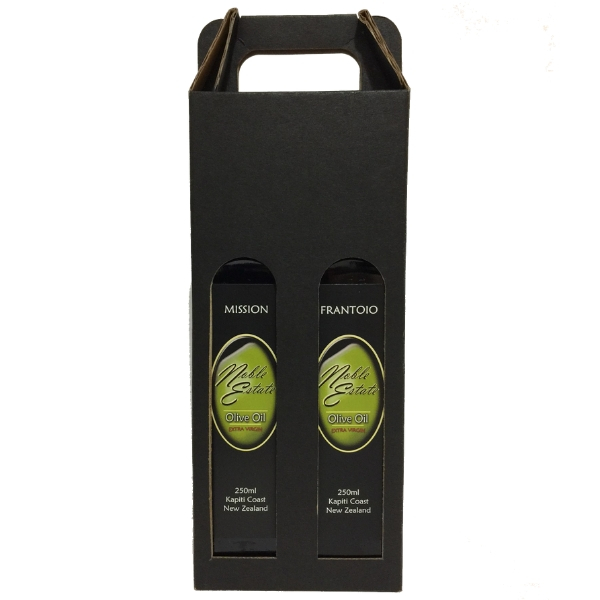 Both of our delicious, premium pure Extra Virgin Olive Oils beautifully presented in a gift box containing award-winning Mission as well as Frantoio Extra Virgin Olive Oil.
